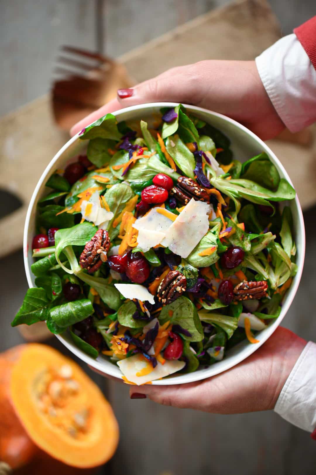 Faremo uno spumone al prosciutto da servire con delle sfogliatine; prepareremo un’insalata invernale con zucca, cranberry e pollo sfilacciato; comporremo una stella di tramezzini con preparazioni di pesce e sforeremo un pie di ravioli di zucca.
