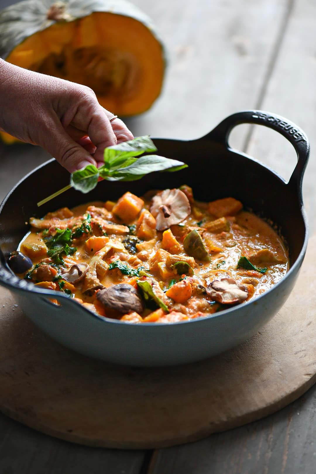 Impasteremo una focaccia alla zucca; prepareremo la pasta di curry rossa da usare in un delizioso thai curry vegetariano a base di zucca; sforneremo una cheesecake basca alla zucca.